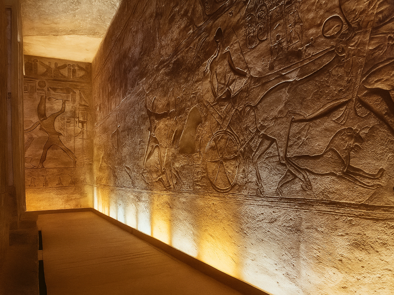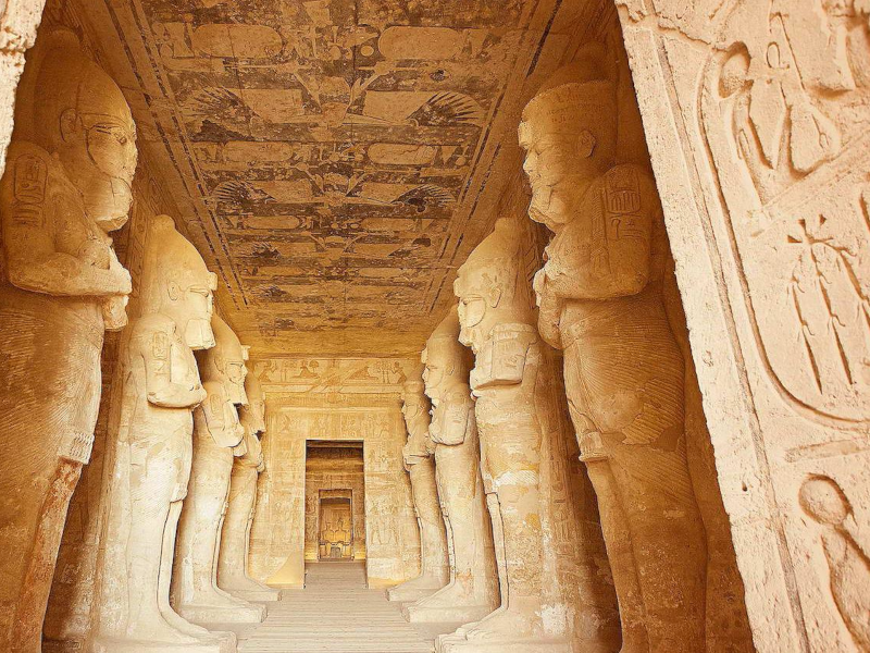 Historische Bedeutung: Der Tempel von Abu Simbel wurde im 13. Jahrhundert v. Chr. unter der Herrschaft von Pharao Ramses II. errichtet. Er sollte sowohl die Macht und Göttlichkeit des Pharaos darstellen als auch den Göttern Amun-Re, Re-Harachte, Ptah und dem vergöttlichten Ramses II. gewidmet sein. Der Bau war außerdem ein politisches Symbol zur Machtdemonstration gegenüber den Nachbarvölkern im Süden.