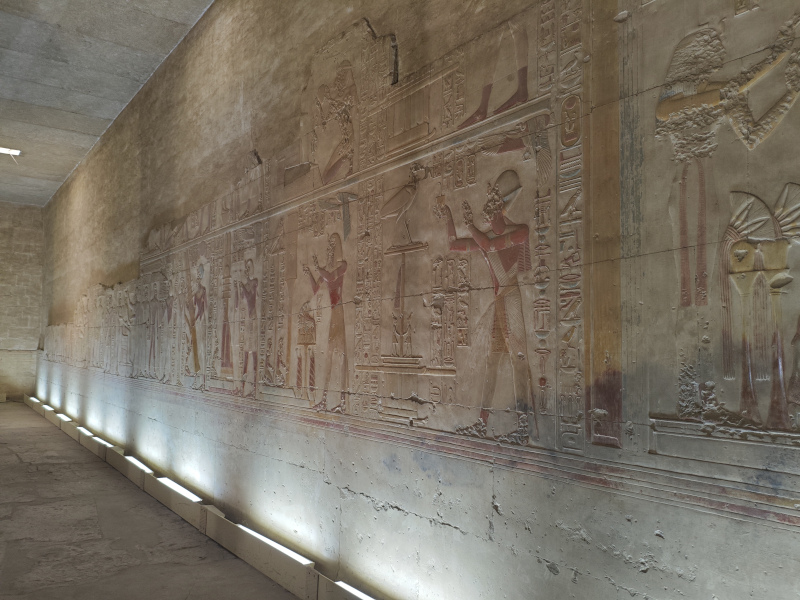 Historische Bedeutung: Der Tempel wurde während der Herrschaft von Seti I. im 13. Jahrhundert v. Chr. erbaut und ist dem Gott Osiris gewidmet, der mit dem Jenseits und der Wiedergeburt in Verbindung gebracht wird.
