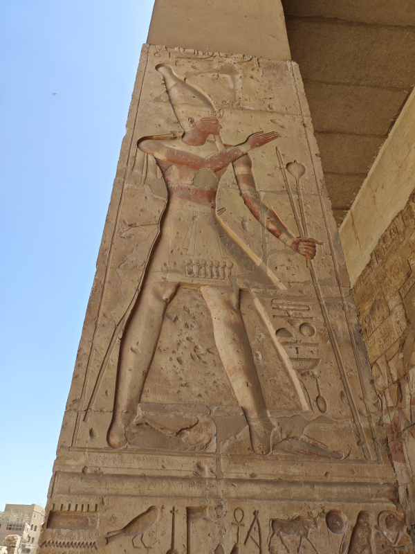 Architektur: Der Tempel ist bekannt für seine beeindruckende Architektur und die kunstvollen Reliefs, die Szenen aus dem Leben des Pharaos und religiöse Rituale darstellen. Besonders berühmt sind die sogenannten "Osiris-Reliefs", die die Wiedergeburt des Osiris zeigen.